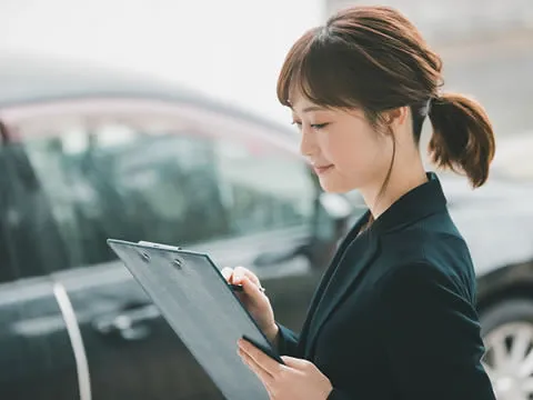 貸渡契約書を作成いたします。内容に同意のうえ、サインをいただきます。ご予定の料金も同時にお支払いください。また、レンタカーのキズやヘコミを、スタッフと一緒にご確認いただけます。